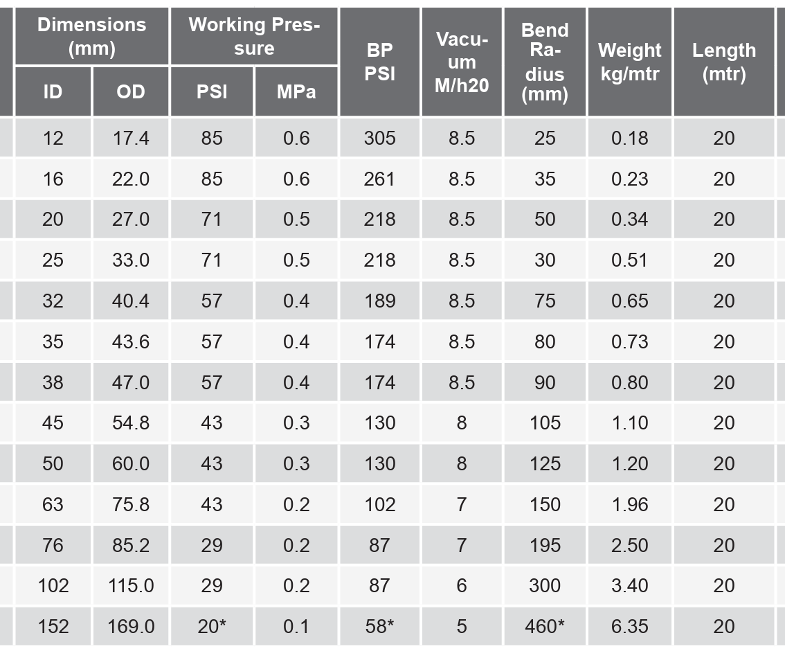 - Very flexible, excellent kink abrasion and crush resistance.